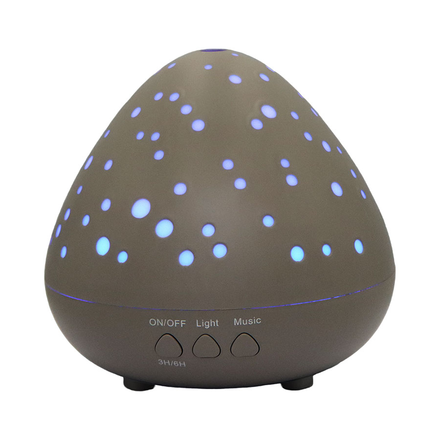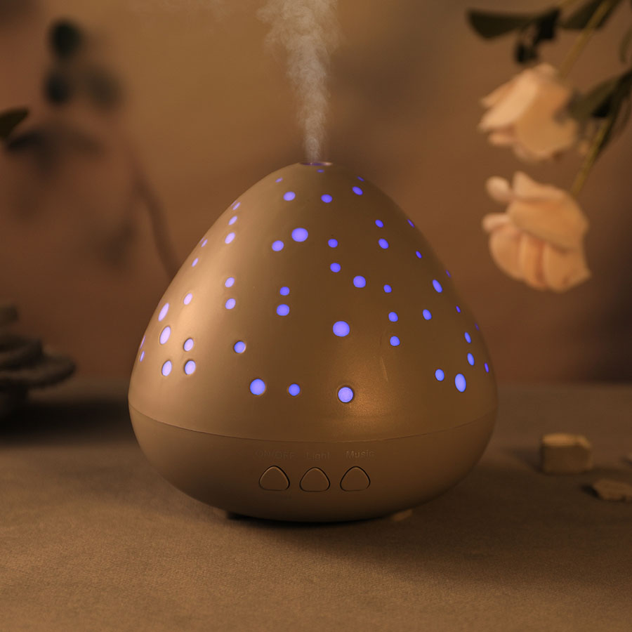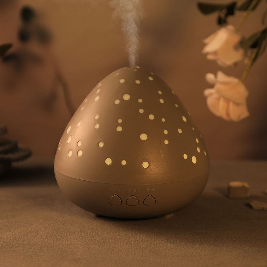 This starry texture diffuser combines a glowing dotted shell design with ultrasonic mist diffusion, LED mood lighting, and relaxing sound modes.